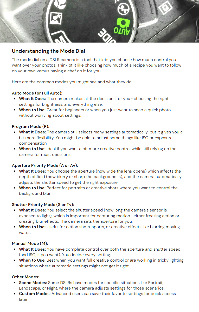 Struggling with your new DSLR or mirrorless camera? Not sure where to start? This beginner-friendly 28-page eBook will walk you through everything you need to know to confidently set up and use your camera.